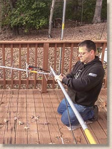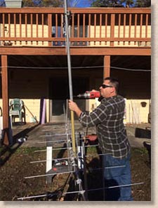 The first step was to inspect the antenna. It was determined that the nuts and bolts holding the elements to the boom were in desperate need of replacement. A trip to Lowe’s for stainless steel hardware did the trick. K8RVR and I set about the task of removing the old hardware and replacing it with the new and shortly thereafter the task was completed.